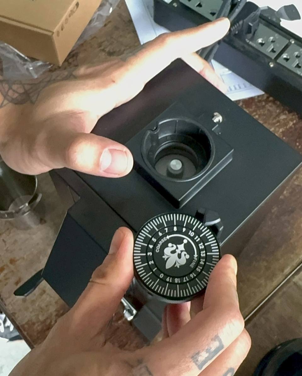 Thứ khiến tôi ấn tượng đầu tiên không phải retention hay blow-up, mà lại chính là cái núm chỉnh to. Nghe đơn giản vậy thôi nhưng với espresso, việc chỉnh độ mịn quyết định thành – bại của cả shot. Những máy có núm nhỏ thường khiến tôi “lỡ tay” xoay quá đà, và kết quả là shot chạy nhanh 5–6 giây hoặc nghẹt không chảy.